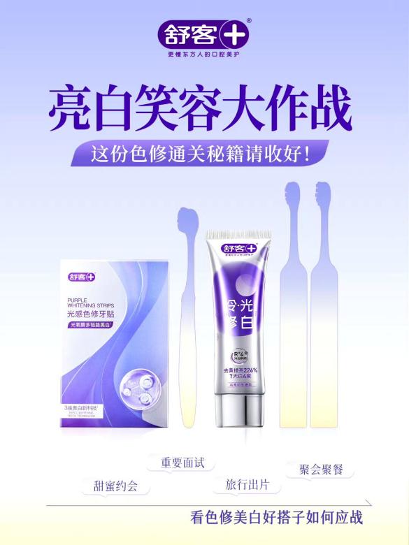 破解牙齿美白痛点!舒客色修牙贴+牙膏,双重加持长效亮白